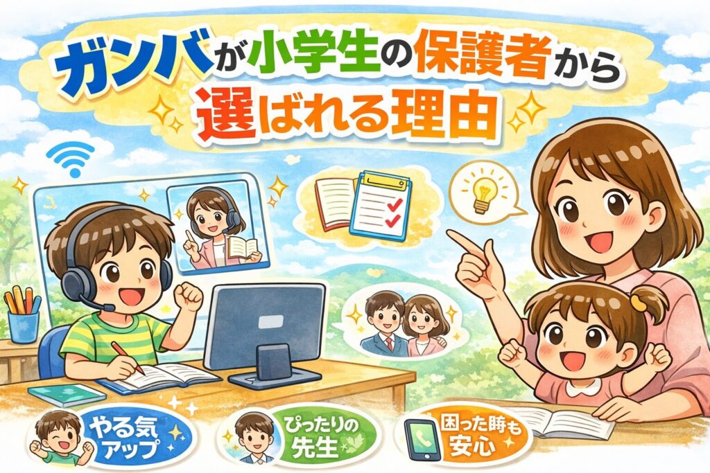 この記事では、口コミ評価が高く、小学生の学習習慣づけに強いオンライン家庭教師ガンバについて、無料体験の内容・料金・サポート体制を保護者目線で詳しく解説します!