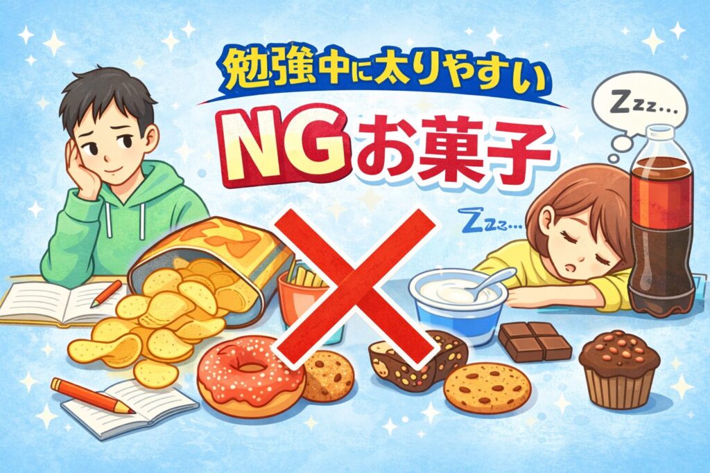 勉強中のお菓子選びでは、「低カロリー」だけでなく「腹持ち」や「集中力への影響」も一緒に考えることが大切です。